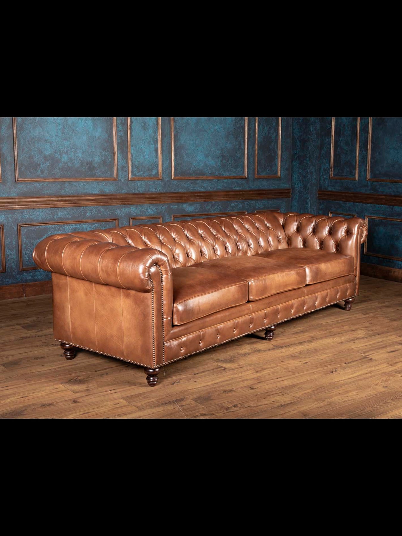 Classic Chesterfield Sofa in Burnished Leather – Perfect for Western-Inspired Living Rooms