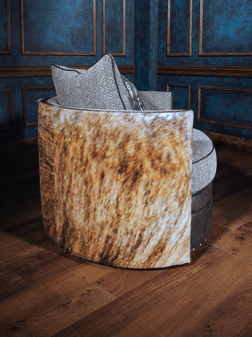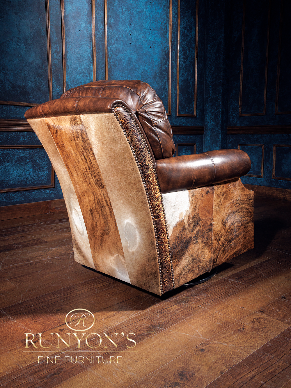Runyon's Fine Furniture cowhide chairs are more than just seating — they’re a true expression of luxury and craftsmanship. Built with premium materials and attention to detail, each model is made to last for years, aging gracefully with time and use. Whether you're furnishing a modern ranch home or just want a bold, Western-inspired accent, this is where quality meets comfort. Discover your next favorite living room chair in our exclusive collection and bring a touch of timeless Western luxury to your home.