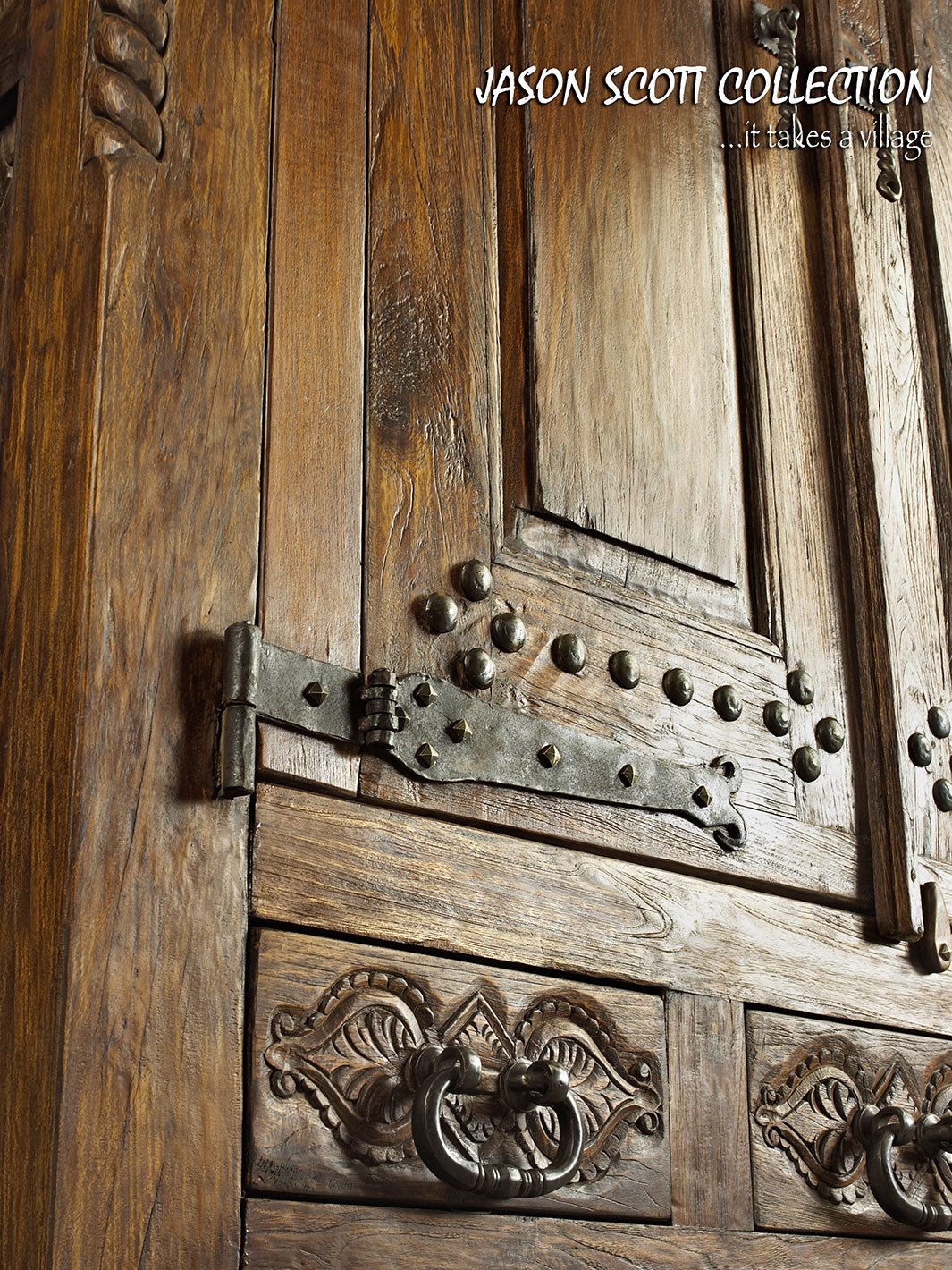 Discover the excellence of Jason Scott Cabinets, a part of the renowned Jason Scott Collection. These top-quality cabinets, made with high-quality materials, are a true work of art designed to enhance the style of your home. A team of over two hundred skilled workers in Java meticulously crafts these ornately designed cabinets with reclaimed teak salvaged from abandoned structures using a unique ten-step process that includes wire brushing, scraping with broken glass, burning, waxing, rubbing with empty bottles, and state-of-the-art kiln drying.