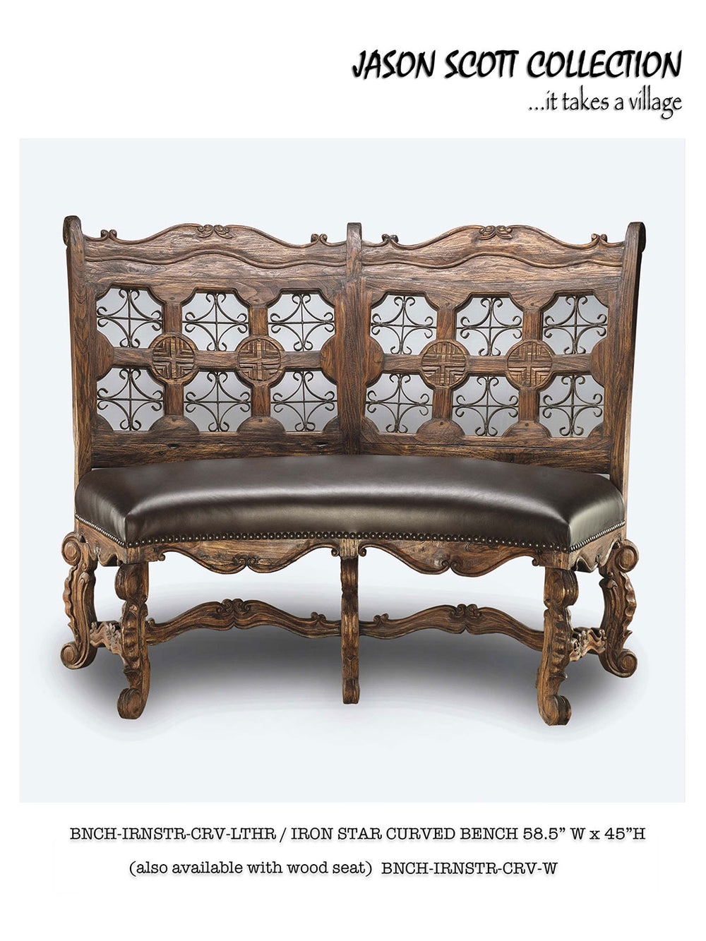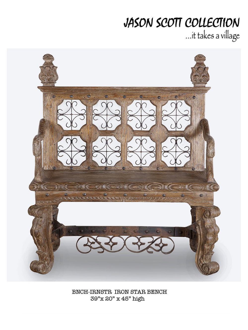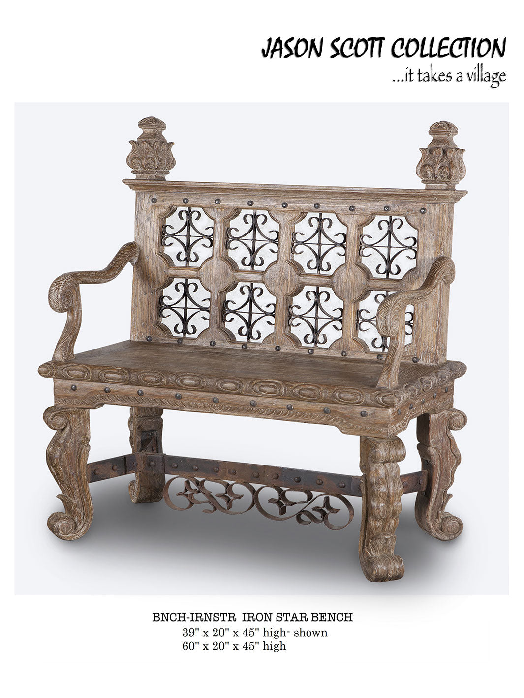 Jason Scott Chairs & Benches are beautiful, quality heirloom pieces of furniture, made from reclaimed teak salvaged from abandoned structures. The salvaged wood goes through a unique ten-step process that includes wire brushing, scraping with broken glass, burning, waxing, rubbing with empty bottles, and state-of-the-art kiln drying to achieve a unique look.