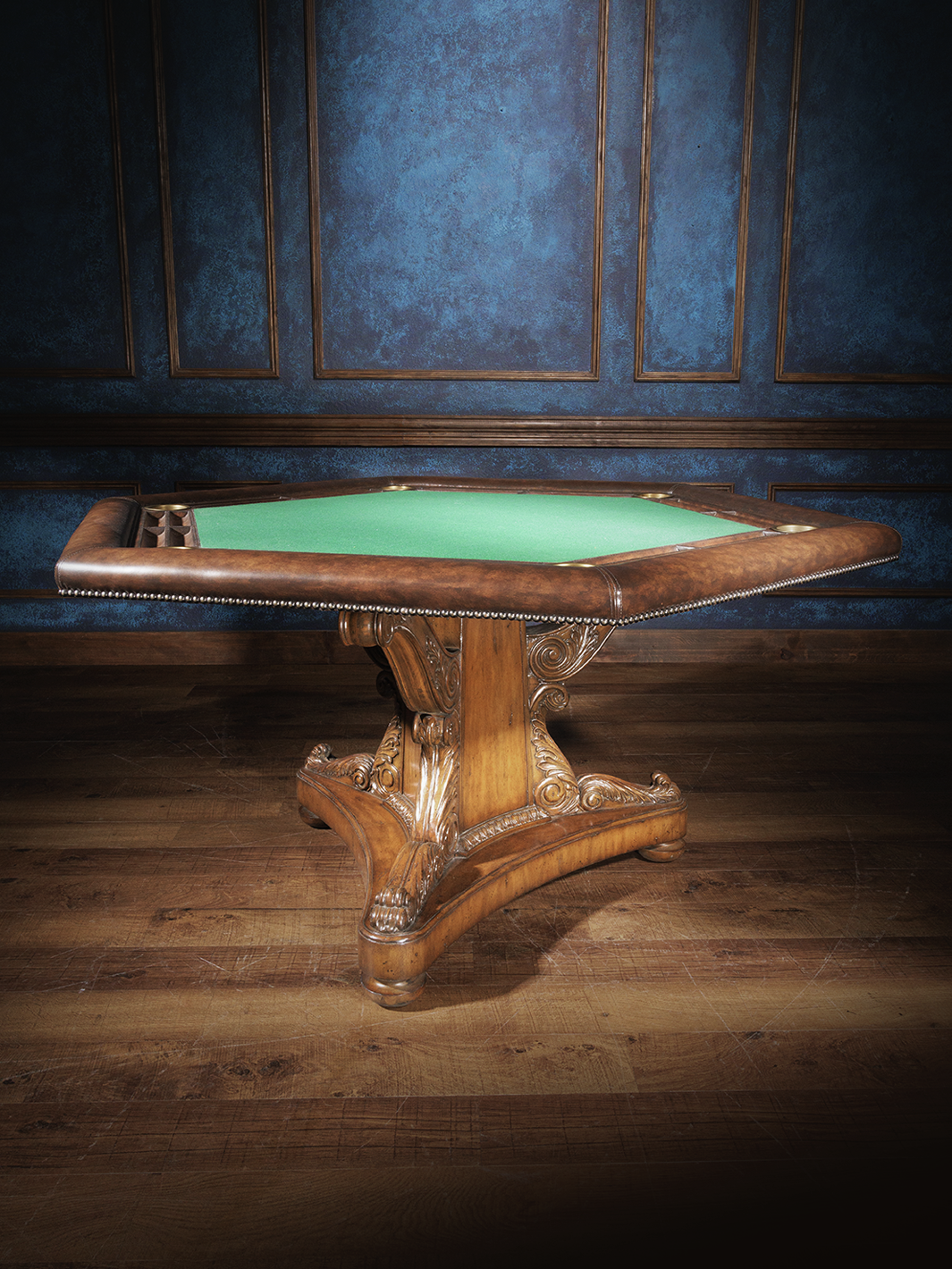 Imagine hosting your next gathering around our exceptional tables with luxurious leather playing surfaces for a professional feel. Every game table in our collection is a durable investment, offering high-end design and functionality to create the ultimate gathering spot in your western home or mountain lodge.