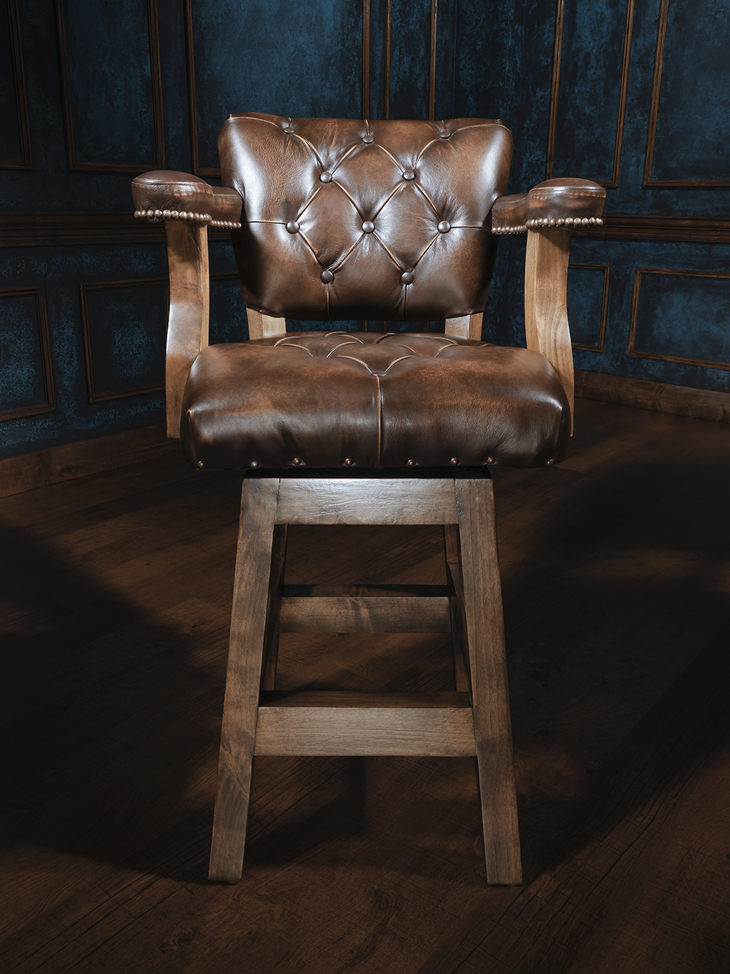The Chisum Tufted Leather Bar Stool is a tribute to Western artisan tradition—designed for everyday comfort and built with heirloom-level care. Handcrafted in Texas by skilled furniture makers, this stool merges rich materials, precision tufting, and rugged elegance into a piece made to stand the test of time. Every curve, cut, and seam reflects a commitment to quality and Western legacy.