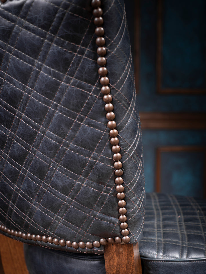 Crafted from top-grain Italian leather, this navy-toned hide features a subtle waxy crackle finish that enhances its depth and dimension. The soft surface is skillfully stitched into a classic quilted diamond pattern, blending traditional craftsmanship with upscale Western influence. With its smooth, semi-protected hand and rich blue tone, this leather offers timeless sophistication and everyday durability.