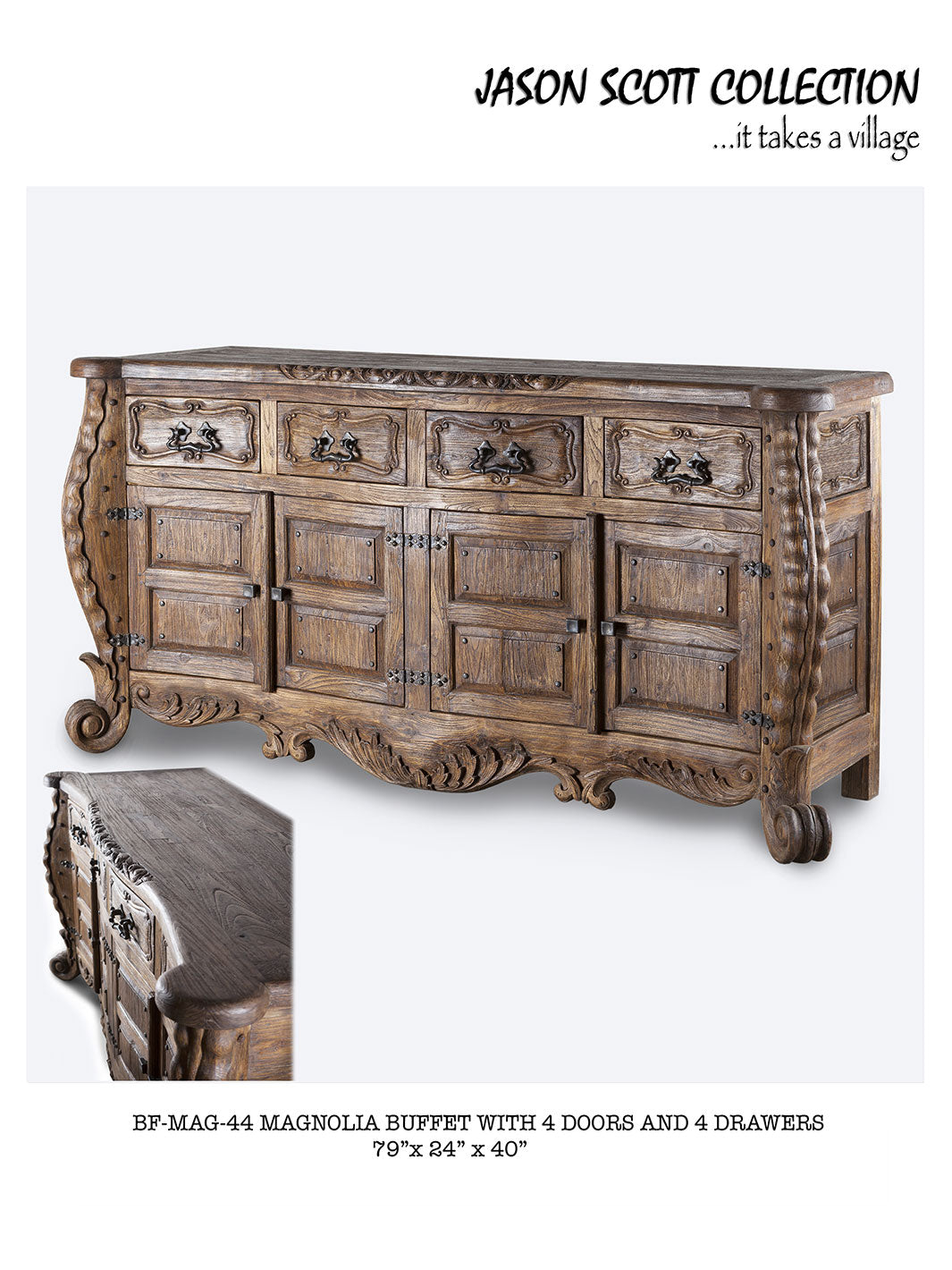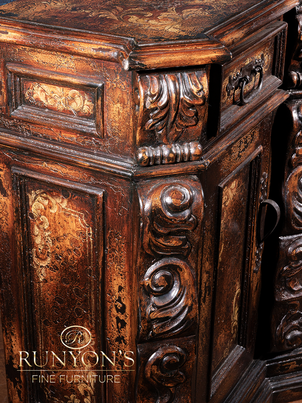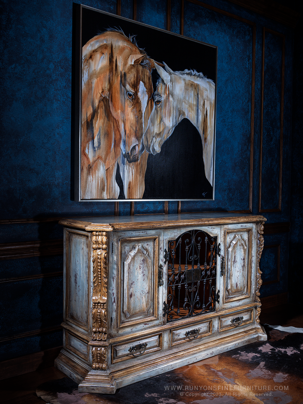 Whether you want to make your dining area more exciting to impress your guests or simply need space to store your expensive china, silverware, and crystal glasses, our selection of buffets can not only match your Western home decor but also prove an extremely useful piece of furniture. At Runyon's Fine Furniture, we share your love for Wild West-inspired aesthetics, so each piece of furniture is crafted with high-quality solid wood, time-inspired hardware, and artisanal craftsmanship to reflect the era of cowboys. With sturdy construction and stylish, rustic designs, our buffets will surely add a splash of whiskey-toned personality to your living and dining space. With spacious cabinets and shelves, every item in our buffet table collection offers great storage solutions to keep your dining area tidy and clutter-free. Browse through our online selection of products or visit our shop to find a buffet that adds a touch of Western warmth and character to your home or ranch. If you want a custom western buffet, contact us, and our artisans will review our designs to create a product made to order for you.