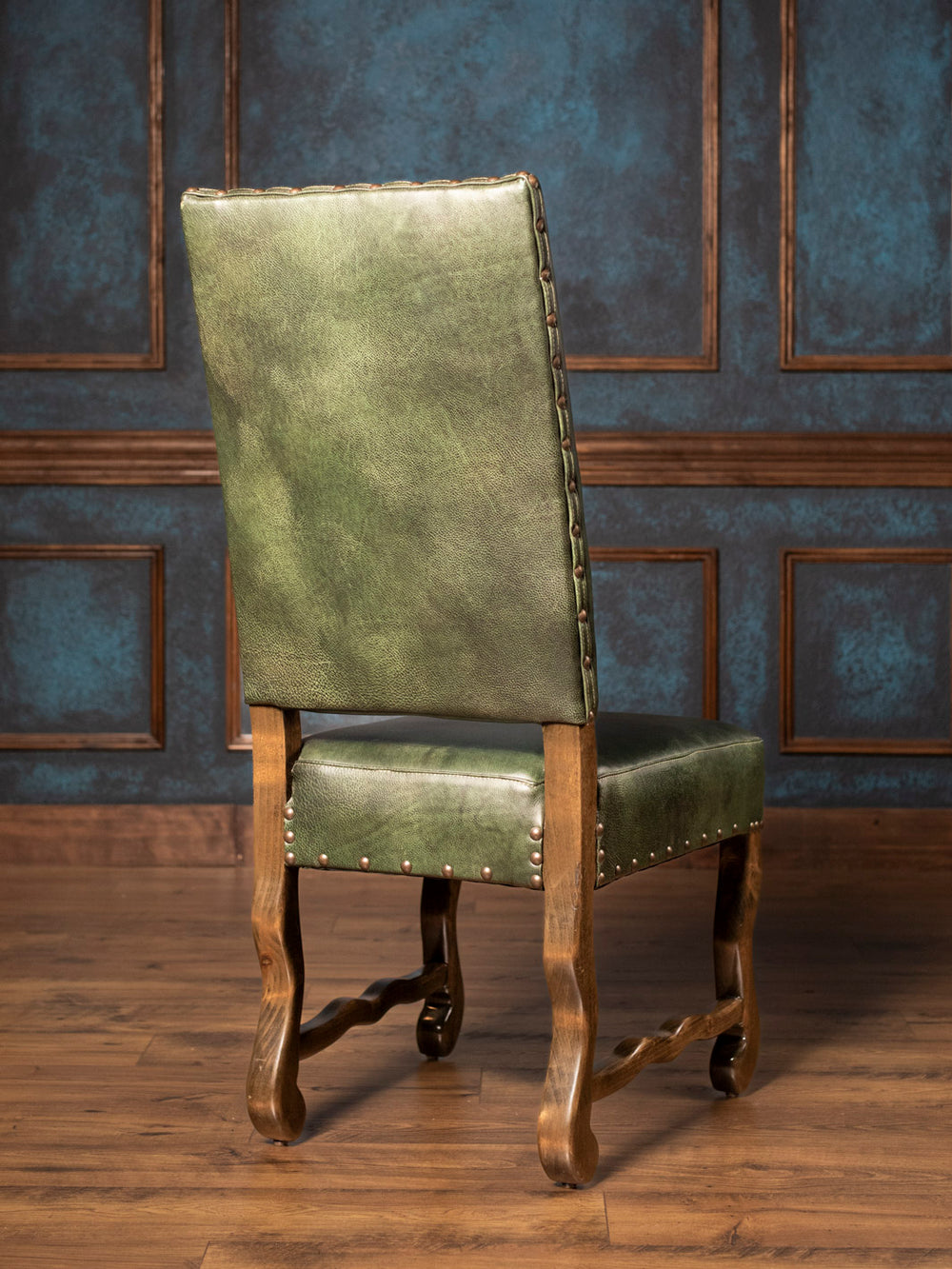 Bring elevated Western style to your dining space with the Verde Vaquero Boot Stitch Leather Dining Chair — a bold fusion of luxury leather craftsmanship and rugged rustic charm. Wrapped in rich, burnished green full-grain leather, this custom Western-style dining chair features authentic boot stitch embroidery inspired by cowboy boot artistry.