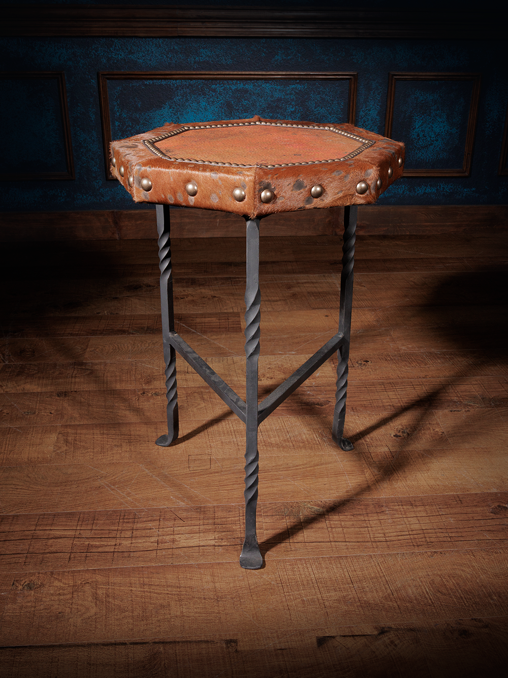 Add a distinctive touch to your home with the classic Concho River Accent Table Set. Constructed with a hand-tooled copper top and iron-forged base, it's sure to add a touch of sophistication to any room. A timeless piece, this set will last for years to come.