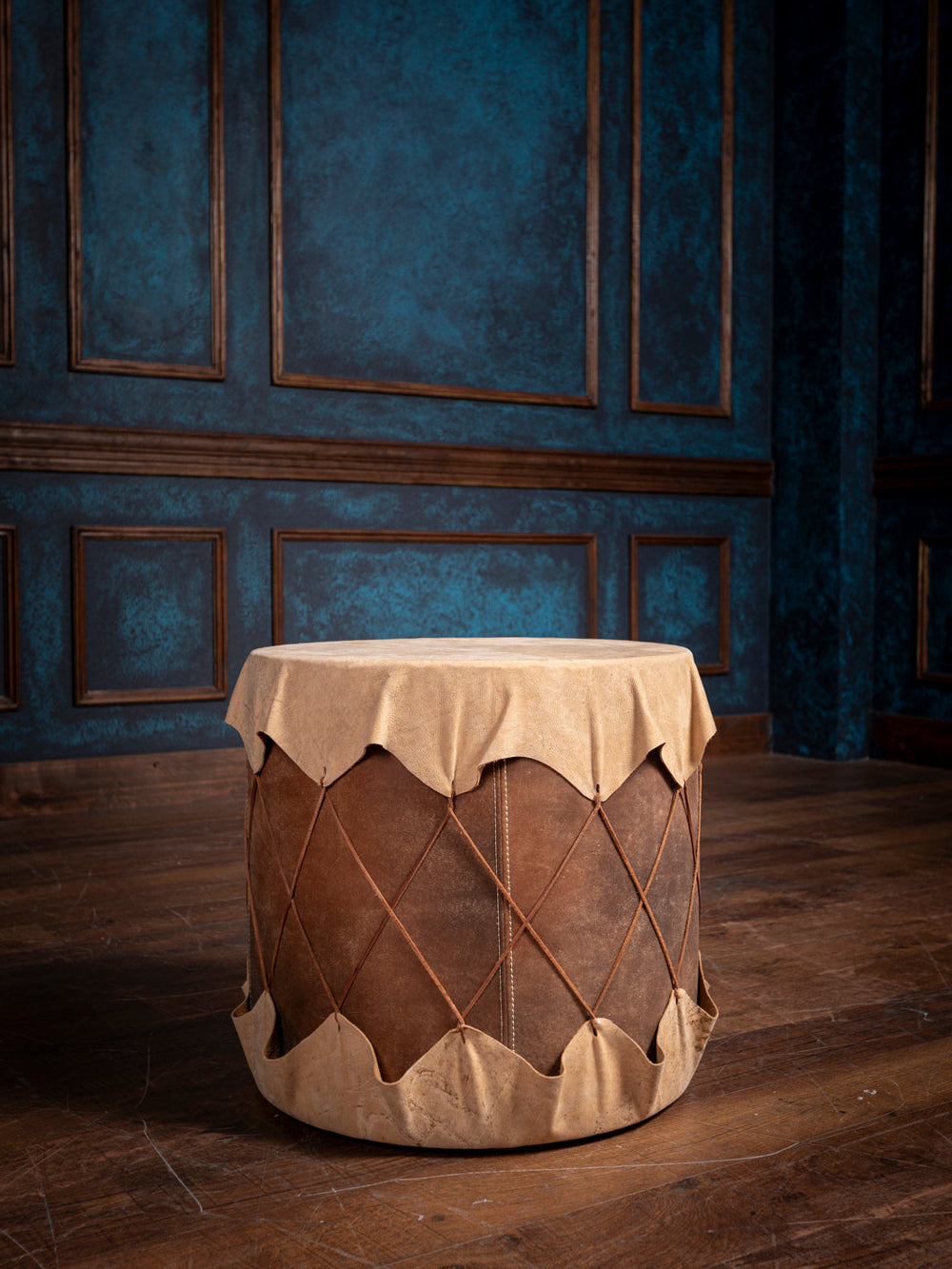 This handcrafted rustic drum accent table adds a unique Western touch to any space. Inspired by traditional Tarahumara designs, this accent piece features rich leather detailing and natural hide, skillfully wrapped and laced for an authentic look. Perfect for Western or rustic décor, this versatile piece can function as both a side table and an eye-catching statement piece, bringing the charm of Native craftsmanship into your home. Ideal for living rooms or bedrooms seeking a blend of vintage and Western style.