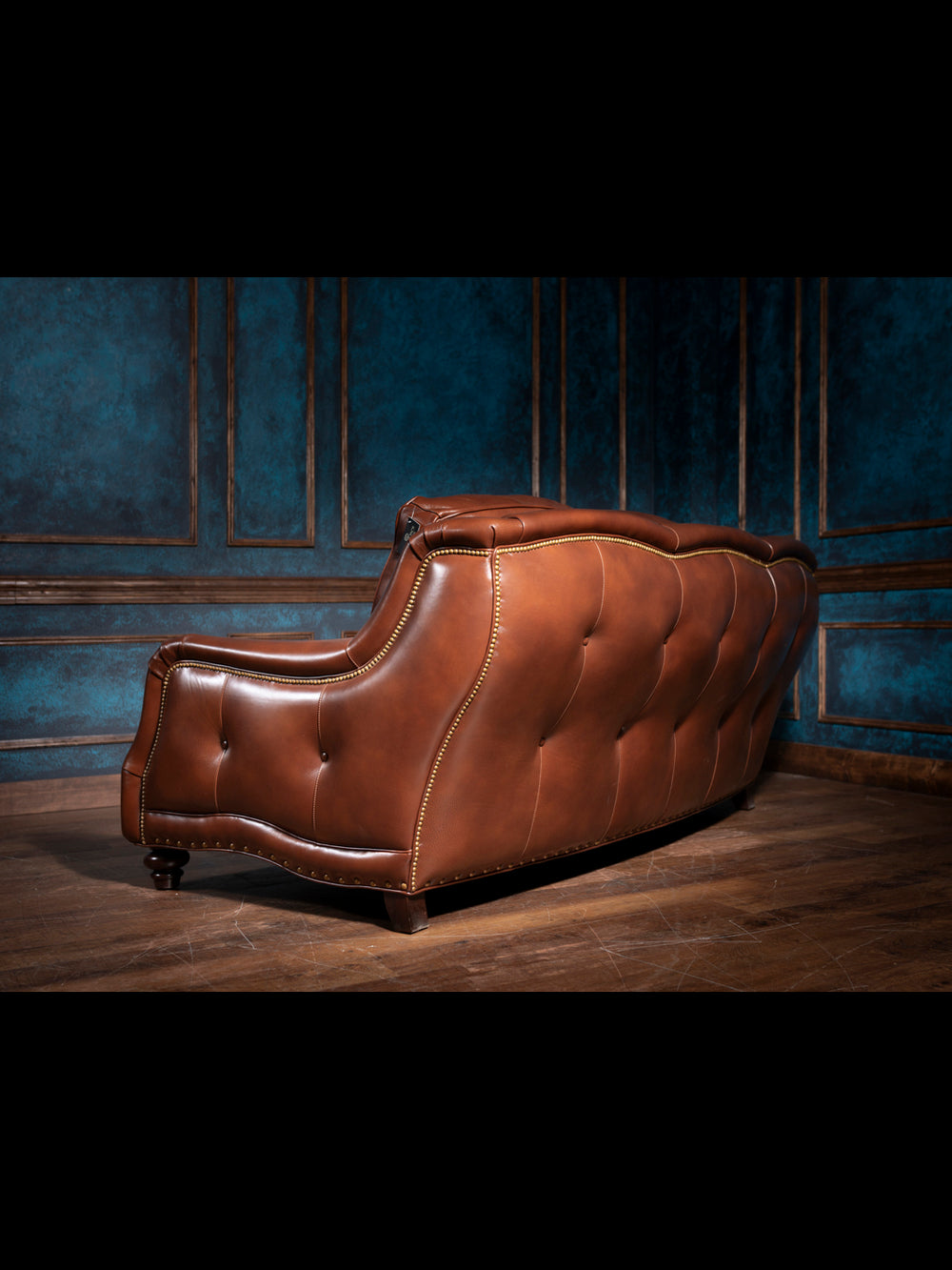 Hand-Stitched Top-Grain Leather, Button Tufting, and Brass Nailheads