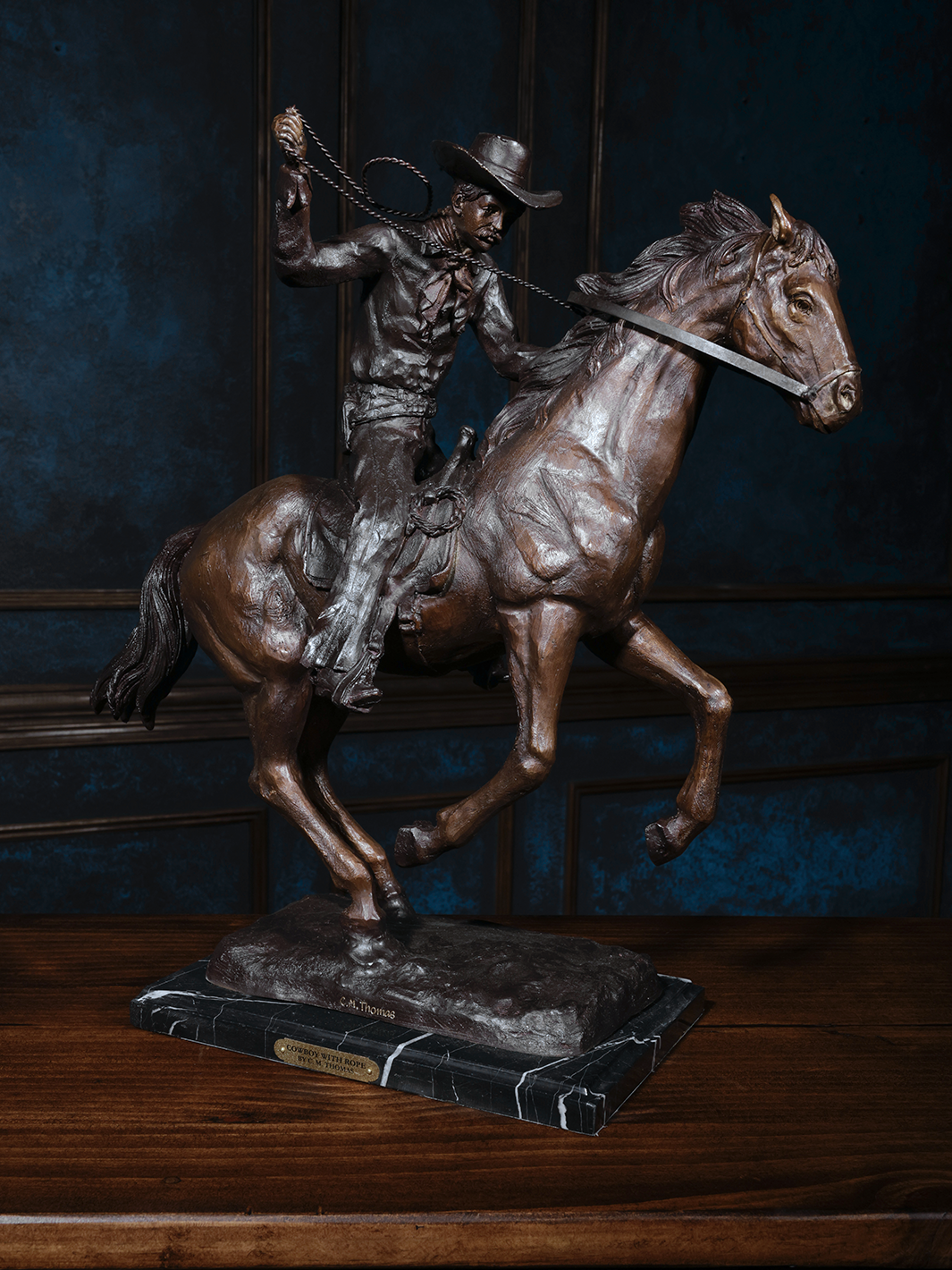 Bring the spirit of the west to life with one of our stunning western sculptures in your home or cabin, preserving the fading history of western aesthetics. Each western sculpture at Runyon's Fine Furniture can perfectly complement the rustic ambiance of any western-inspired room. Our remarkable pieces of art, crafted by the talented artists of America, pay homage to the larger-than-life characters of the Old West without harming any animals in the making process.